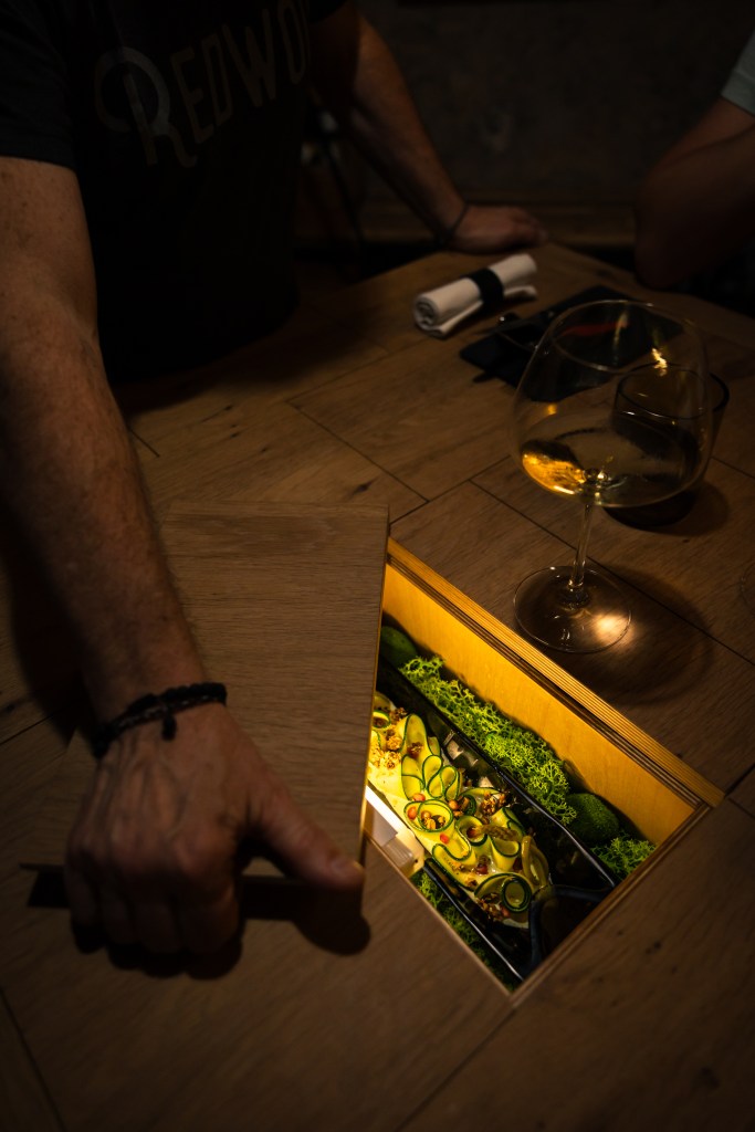 This discreet guest house and dining table offers an extraordinary experience for culinary adventurers. In this “dining cellar”, dishes literally emerge from the table in an intimate performance, conceived as a cabinet of culinary curiosities.
