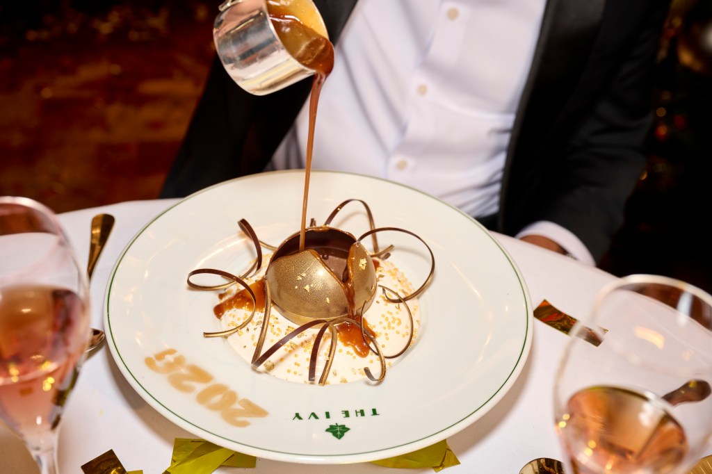 Desserts feature The Ivy New Year Bombe with Champagne jelly, a Champagne Float of Sicilian lemon sorbet and Laurent-Perrier foam, and a decadent Tropical Rum Baba with mango and Chantilly cream.