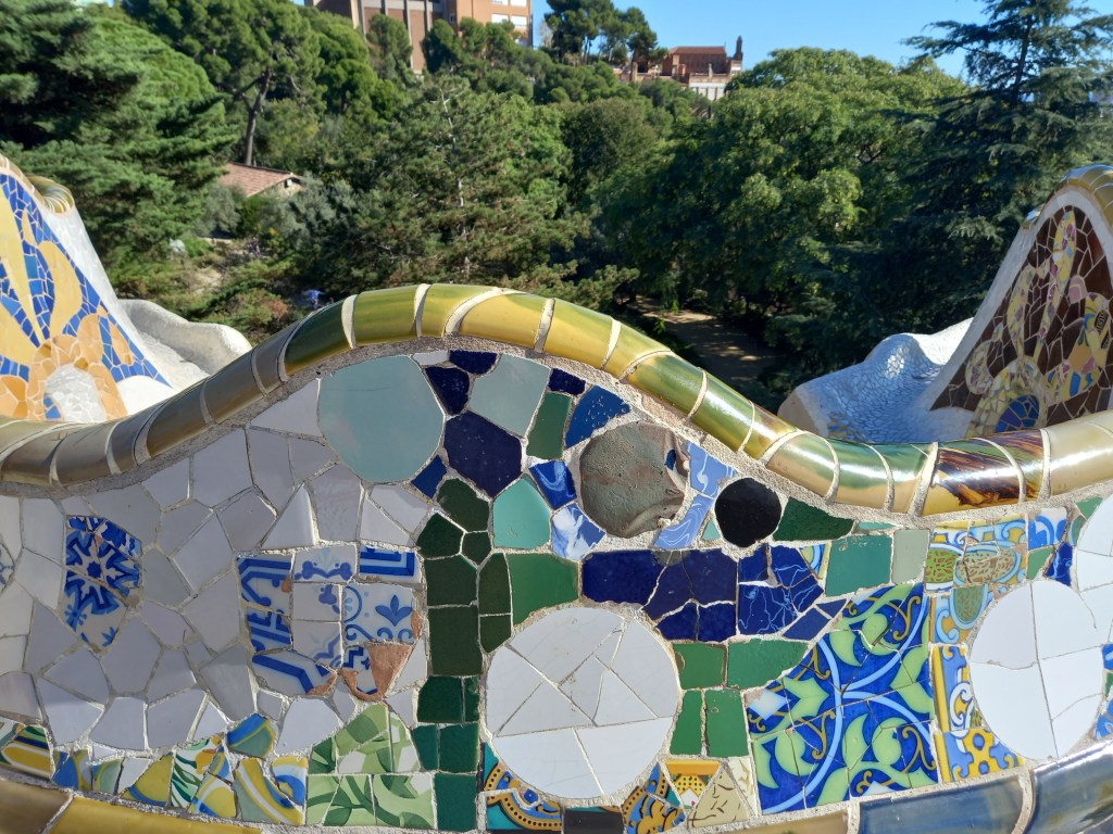 The following day, the city itself becomes your playground, inviting you to explore its many hidden corners and celebrated landmarks. You begin your wander through Parc Güell, Gaudí’s whimsical masterpiece, where every corner bursts with colour and imagination. The park’s mosaic-covered serpentine benches undulate like waves, forming inviting curves that seem almost alive, while vibrant ceramic tiles catch the sunlight, scattering rainbows across your path.