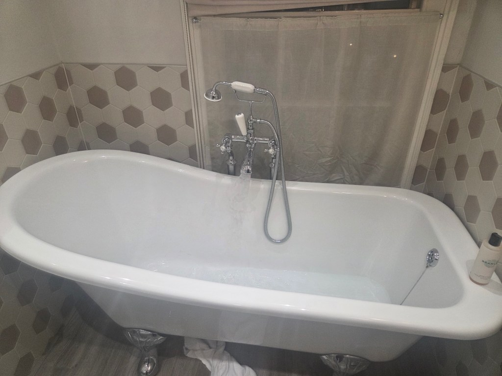 There are 32 rooms spread across three cottages, and we chose the best category. Ours was in the same building as the restaurant up the stairs and past the Vanity Fair pictures. Room one opens up an inviting space with a wardrobe- of course, filled with tea and coffee making facilities and a safe and space to hang one’s clothes. There is also a master bedroom and a huge, sweeping window with a patio window that opens out onto Narnia. The bathroom had a huge tub set on clawed feet, perfect for an indulgent soak with Bramley amenities.
