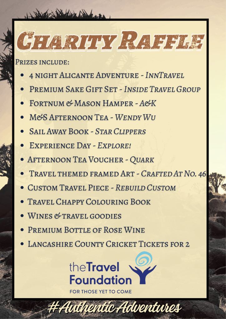 Don’t miss out on a fantastic raffle with a four-night adventure to Alicante, an M&S Afternoon tea, a Fortnum and Mason Hamper, wine and travel goodies, Lancashire County Cricket Tickets, a Premium Sake gift set and much, much more. All money goes towards raising money for the Travel Foundation and all the great work they do .